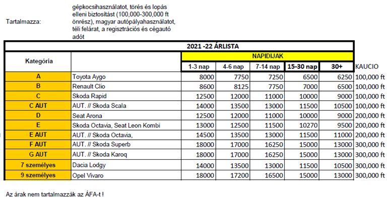 * Az árak tájékoztató jellegűek! Bizonyos típusok árai a feltüntetett árakhoz képest kis mértékben eltérhetnek.